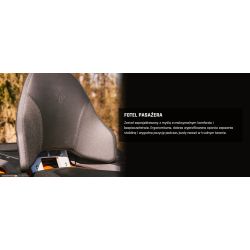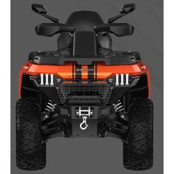 Wśród zaawansowanych funkcji znajdziemy elektryczne wspomaganie kierownicy (EPS) z trzema trybami, inteligentną elektroniczną przepustnicę, centralną dźwignię zmiany biegów, matrycowe reflektory LED, wyciągarkę o mocy 2500 lb oraz hak holowniczy. Wygodny fotel pasażera z oparciem dopełnia komfortowej jazdy.
