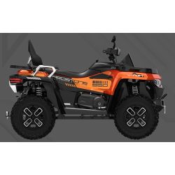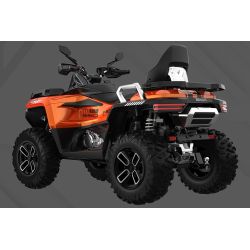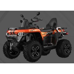 Quad wyposażony jest w 12-calowe aluminiowe felgi, opony terenowe 25-calowe oraz zbiornik paliwa o pojemności 30 litrów. Całość waży 425 kg, a ładowność sięga 697 kg, co czyni go nie tylko maszyną do rekreacji, ale i do pracy.