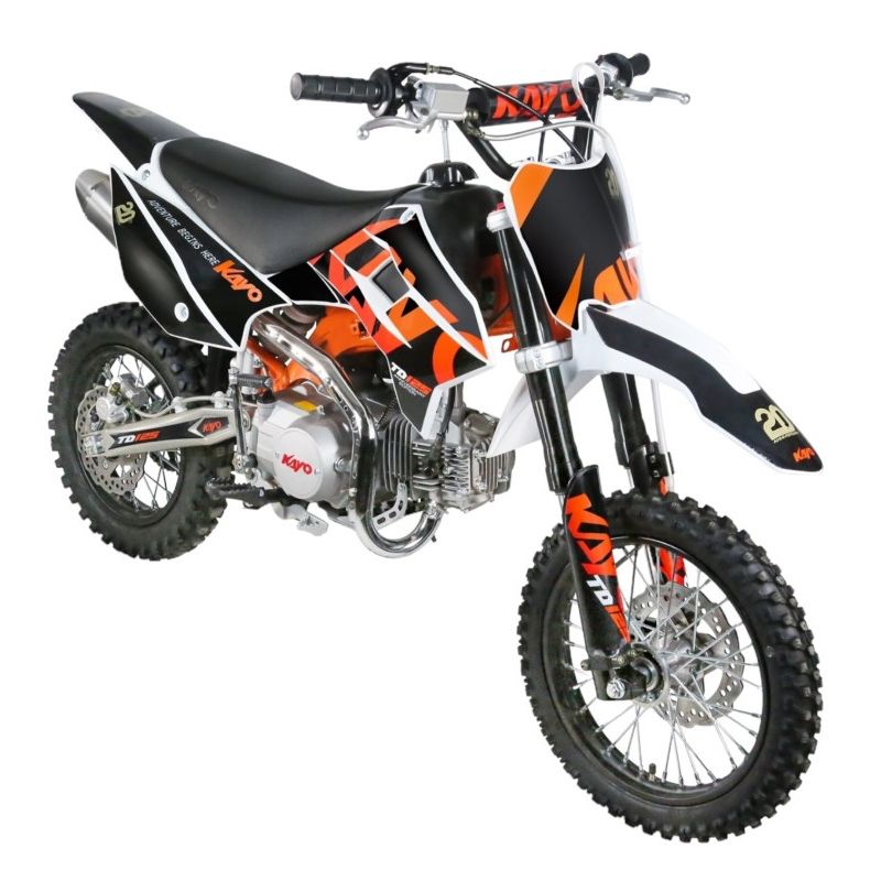 KAYO 125 TD napędzane jest jednocylindrowy, czterosuwowym silnik o pojemności 124cm3 uruchamiany za pomocą nożnego kickstartera. Młody rajder może od początku przyzwyczajać się do dużych motocykli terenowych. Pit bike posiada manualną, czterostopniową skrzynię biegów, a wszystkie biegi włącza się podnosząc dźwignię zmiany biegów do góry, co znacznie ułatwia naukę jazdy.