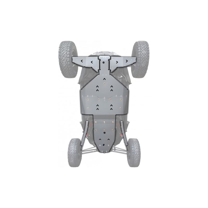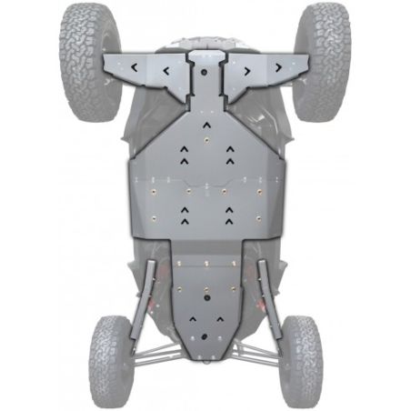 Zestaw zawiera przednie, środkowe i tylne płyty, przednie osłony wahaczy, tylne osłony zawieszenia i elementy mocujące