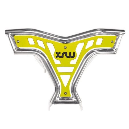Lekki i wytrzymały przedni zderzak X16, solidna konstrukcja, rama: rury O25x2,5 z utwardzanego stopu aluminium 6060-T5, spawane metodą TIG, płyta środkowa z kolorowego niełamliwego polietylenu o wysokiej gęstości,łatwy montaż, wyprodukowano w Europie