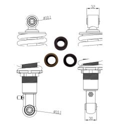 Zestaw zawiera : łożysko przegubowe 1szt. , uszczelniacz 2 szt. (na 1 amortyzator potrzeba 2 takie zestawy)